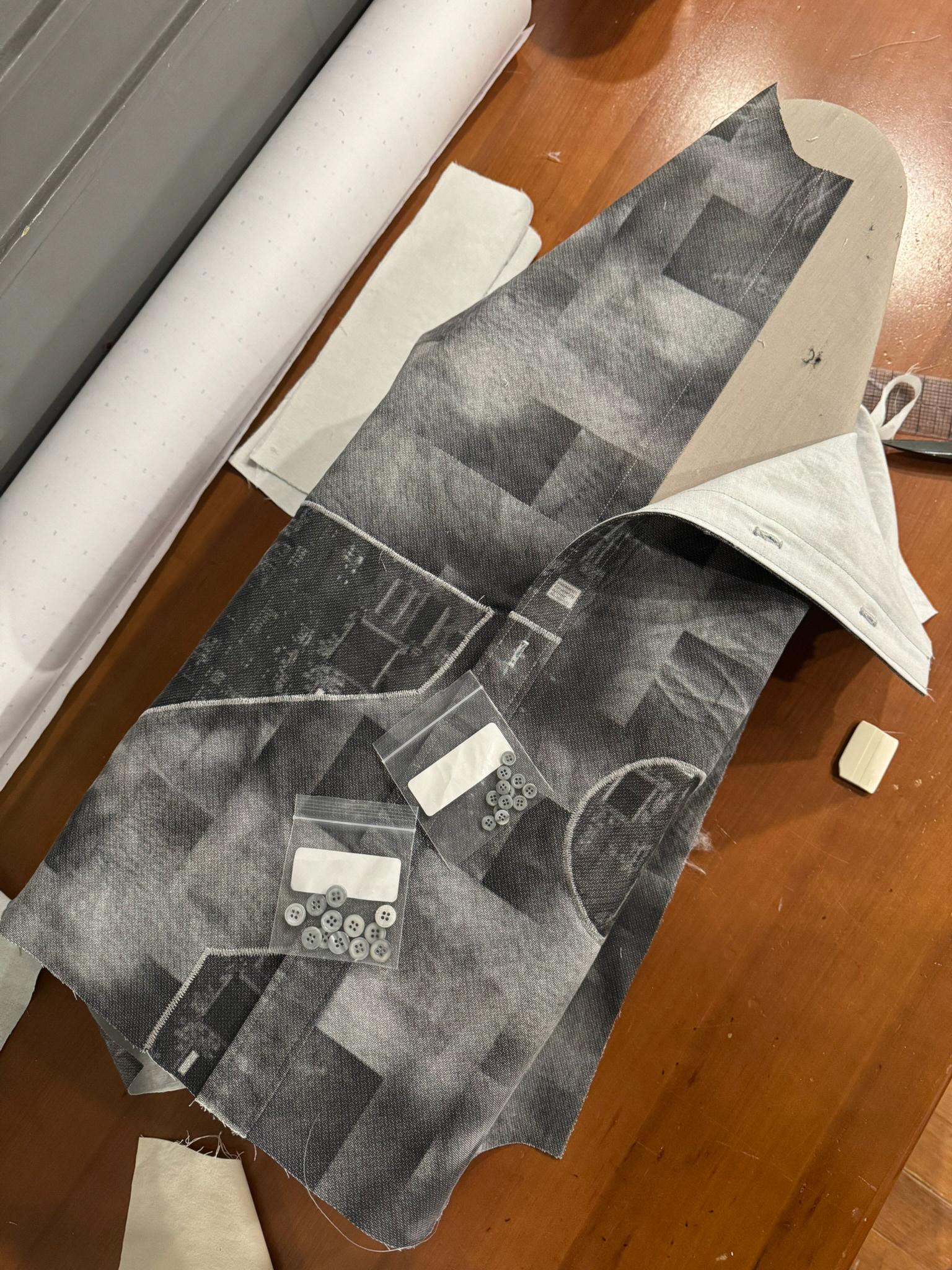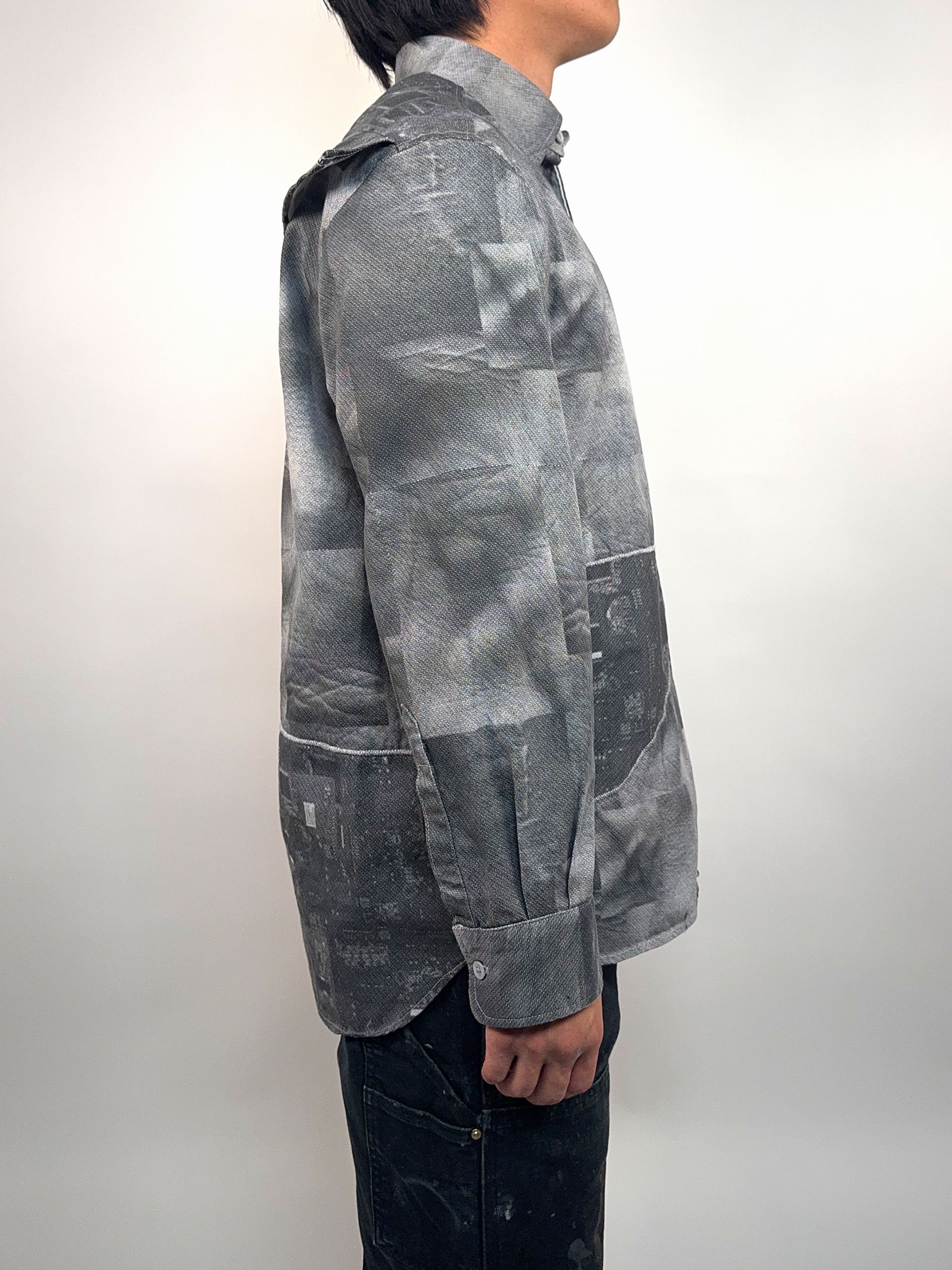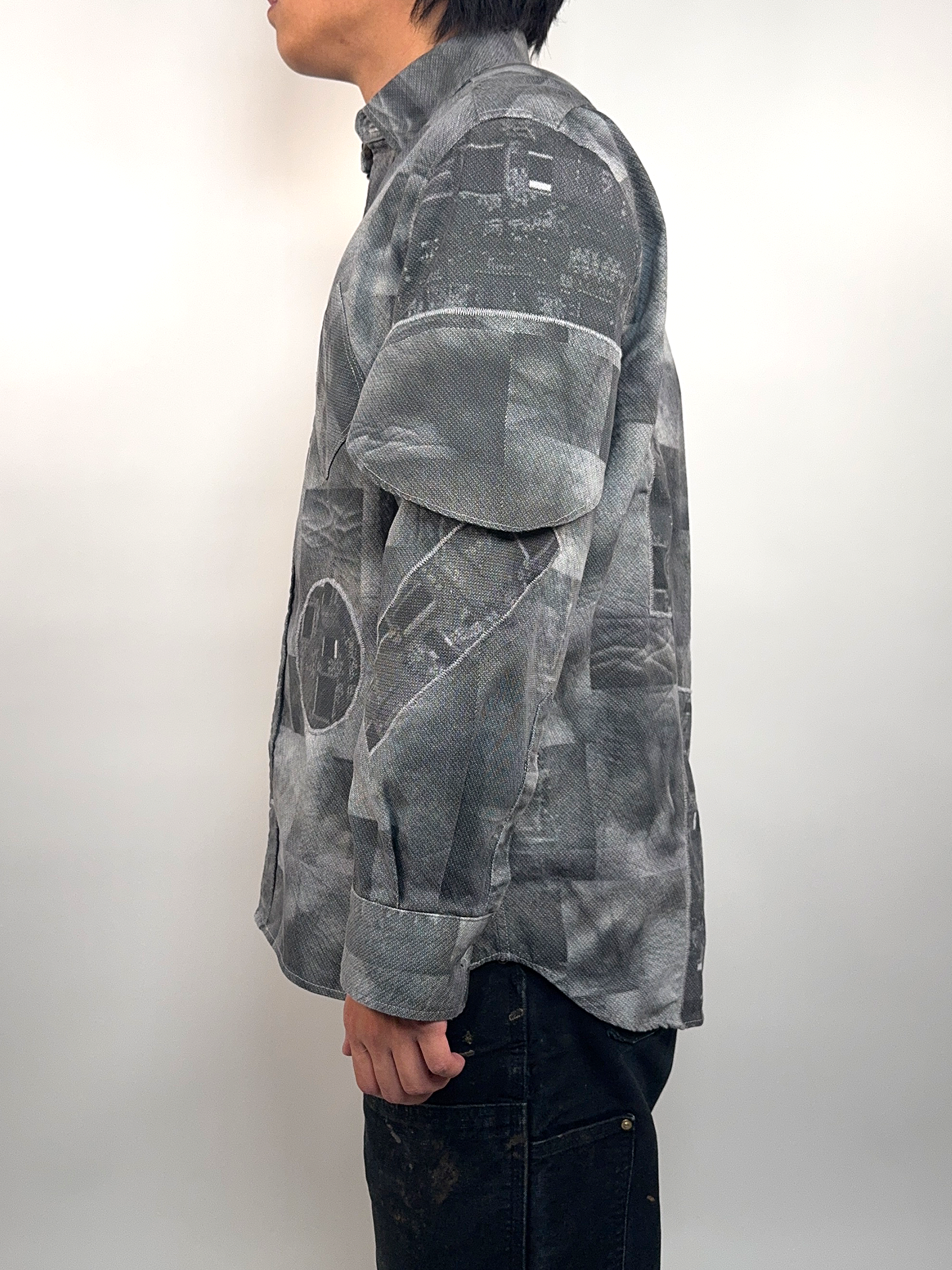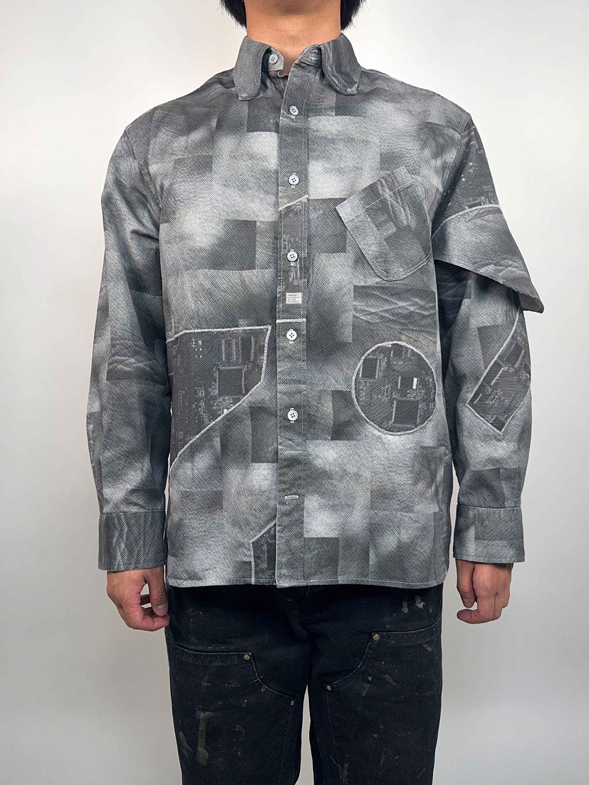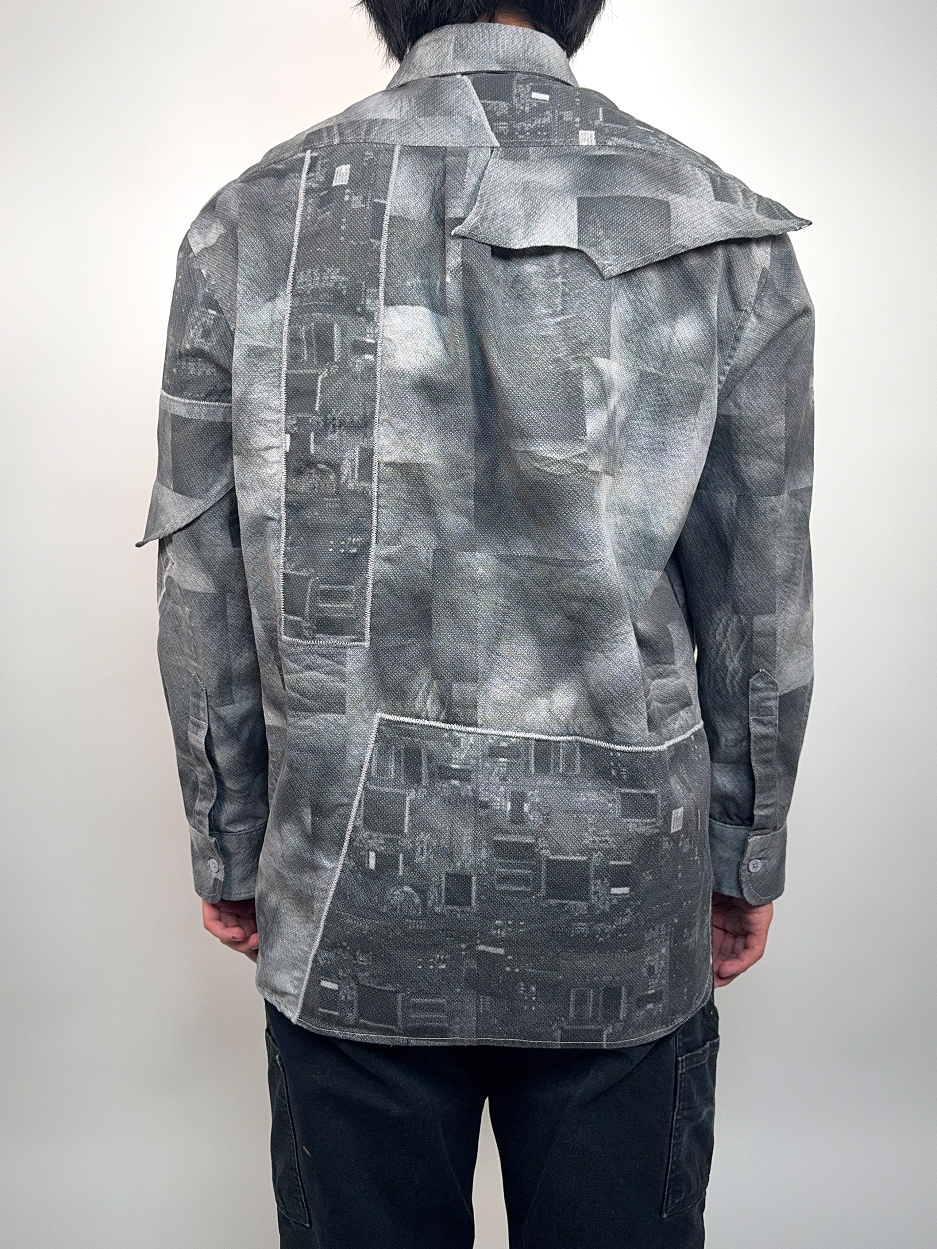 A button down shirt made with prints of my skin and prints of circuits.