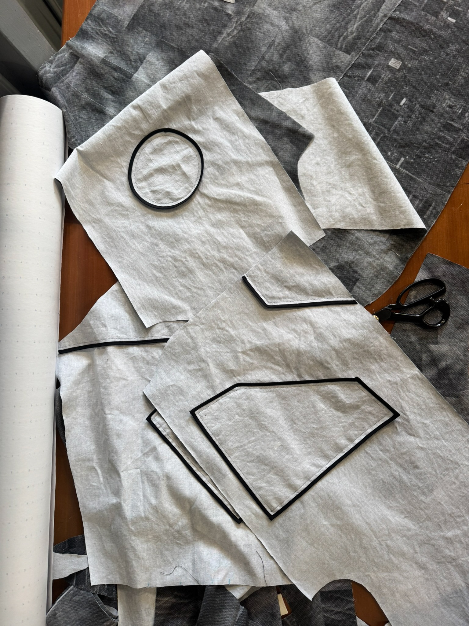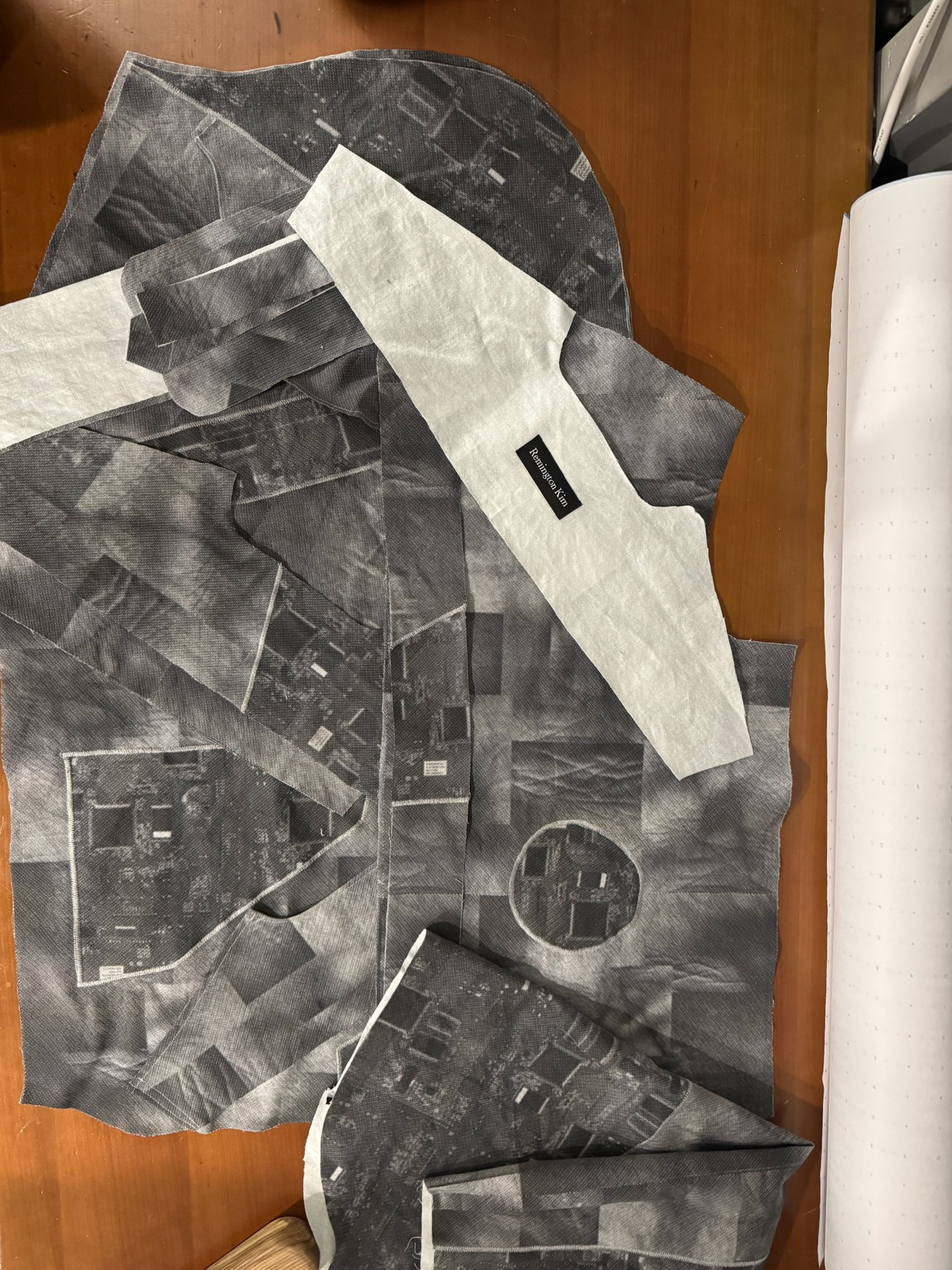 A 5.5 oz cotton twill digitally printed with my custom skin and circuit pattern, on parasocial relationships and emerging technologies.