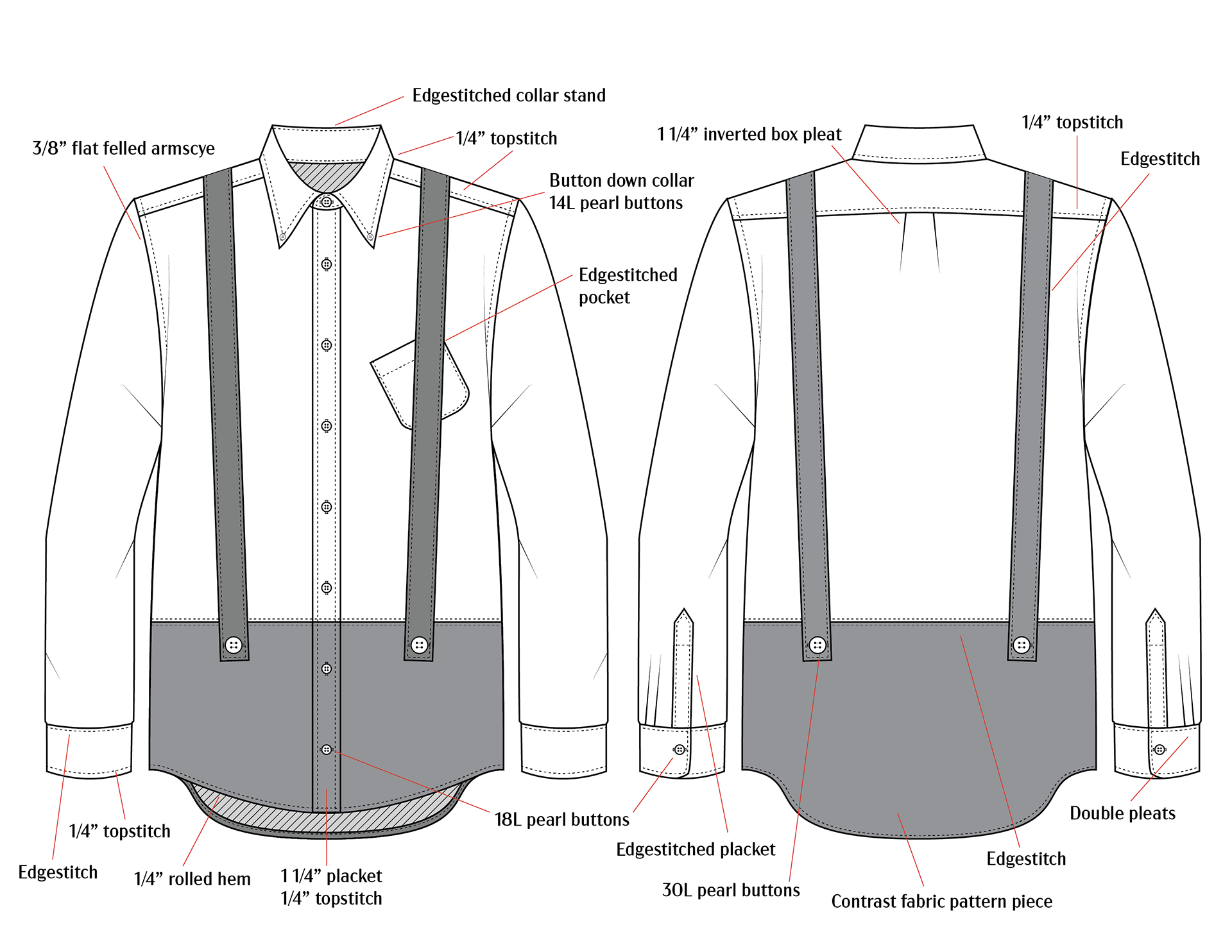 Fabric: 7 oz white and black cotton oxford cloth.